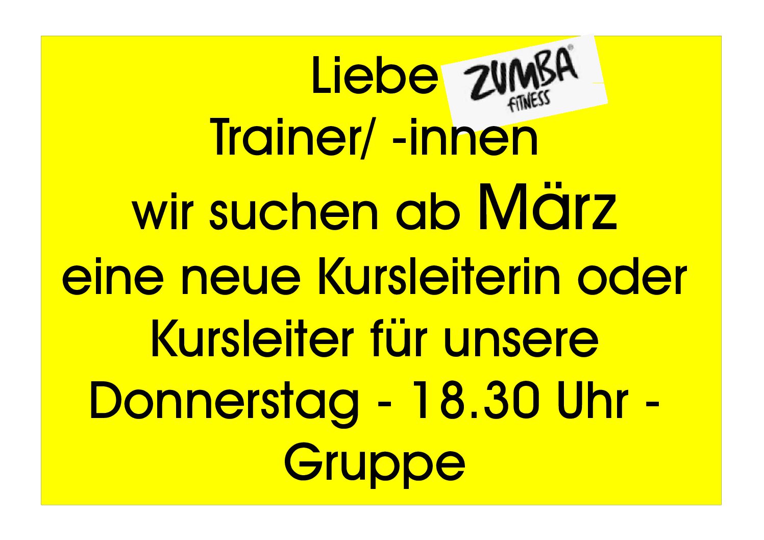 Wir suchen zum nächst möglichen Zeitpunkt, für eine schon bestehende Gruppe am Donnerstag Abend Wirbelsäulengymnastik von 17.30 – 18.25 Uhr eine/-n Kursleiter/- in. Die Teilnehmer sind richtig gut drauf und freuen sich auf DICH?! Melde dich gern direkt im Studio bei Heiko oder Dina unter…